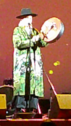 The invocations were next. Couldn't tell you the name of the guy in the "From the river to the sea." sweater. Shylah Ray is the one in the long green coat. Couldn't tell you what either of them said, but was left with a "that's spiritual" feeling by both of them.