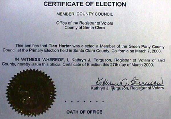 I met Kathryn J. Ferguson at a seminar on voting and technology about a year after this election. She was introduced to the crowd as one of the most technology savvy Registrars in the United States, having served in many leading edge places. I am proud that she got one of my stickers from me.