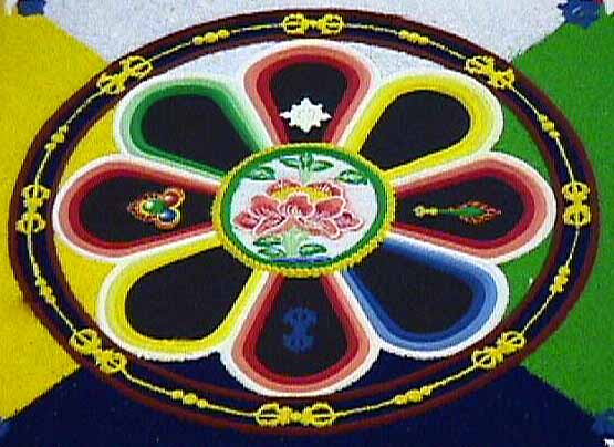 One green petal, one blue petal. A flower where the pistle would be if the flower was a flower.