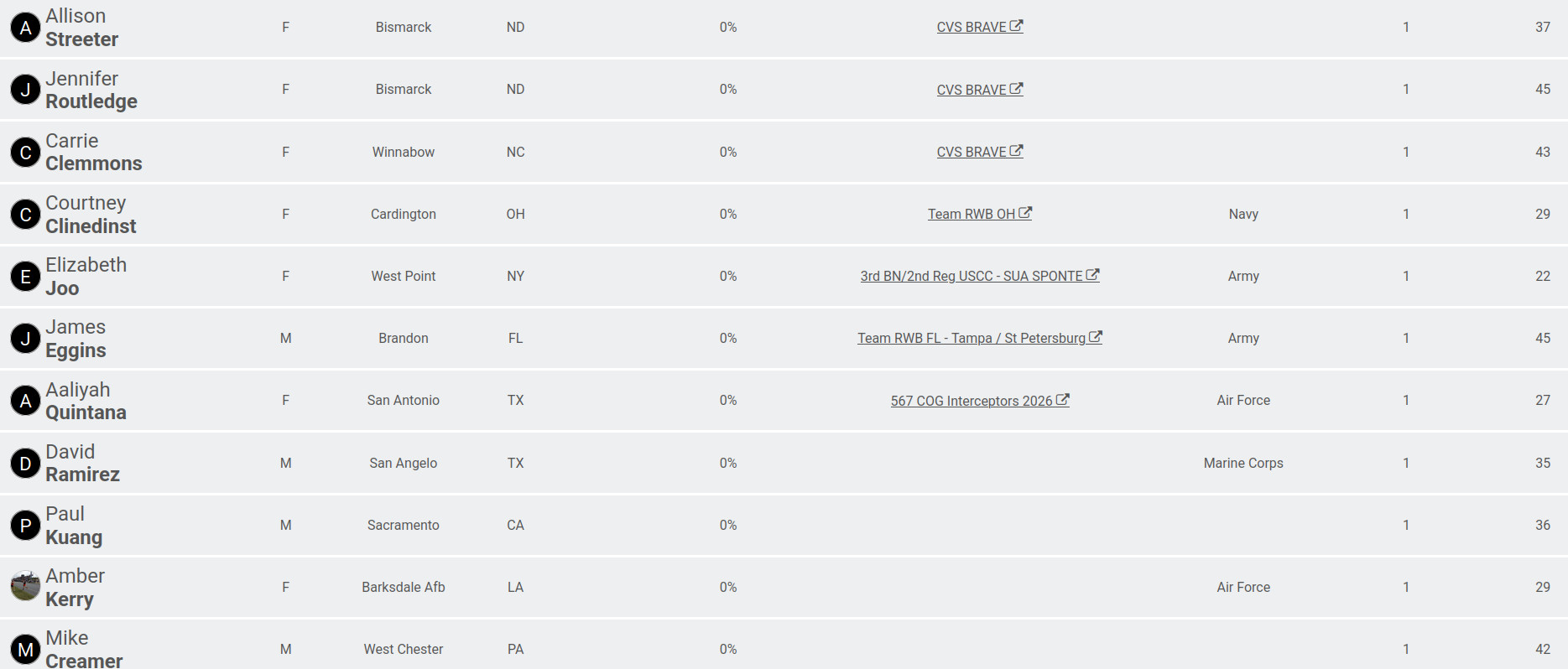 This is the bottom of the last page of results, 247. I have no idea how they sorted the list of people that have not yet recorded any progress.
