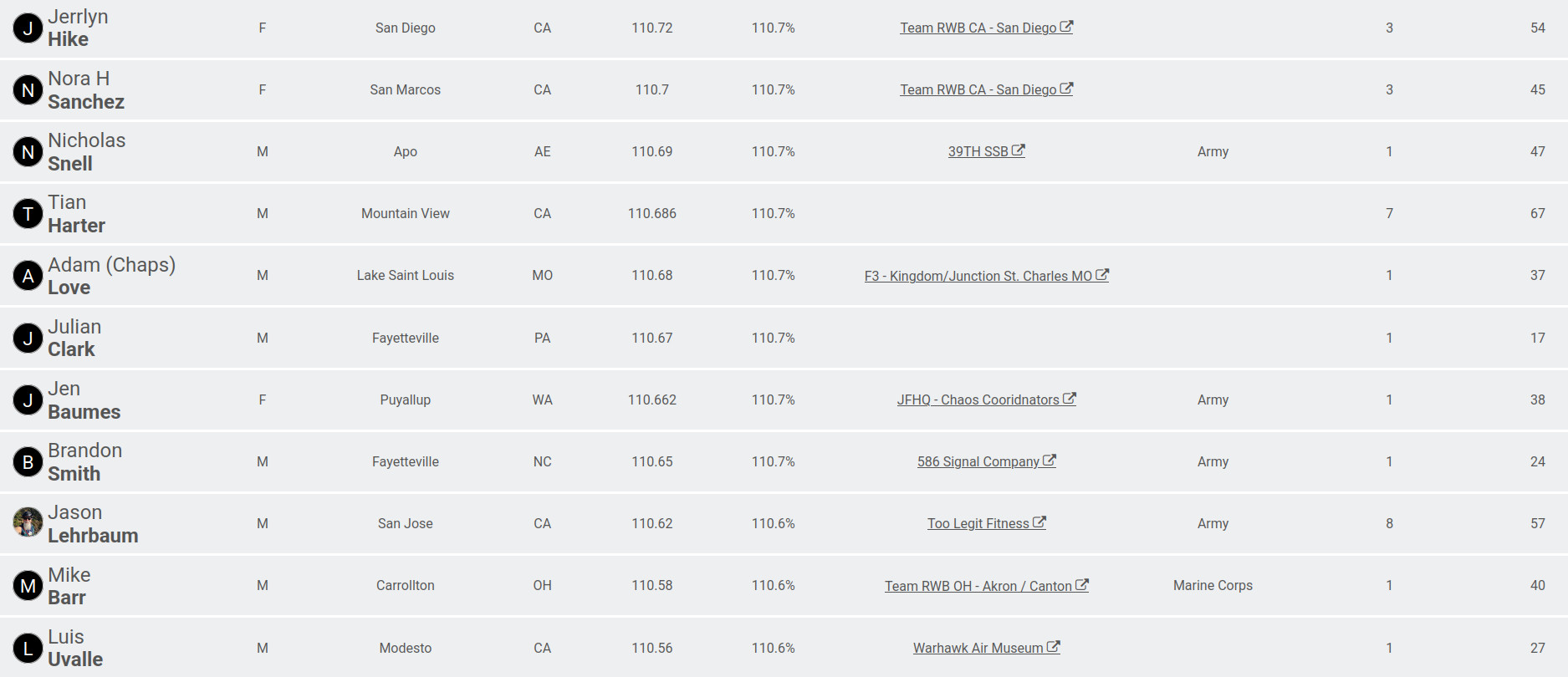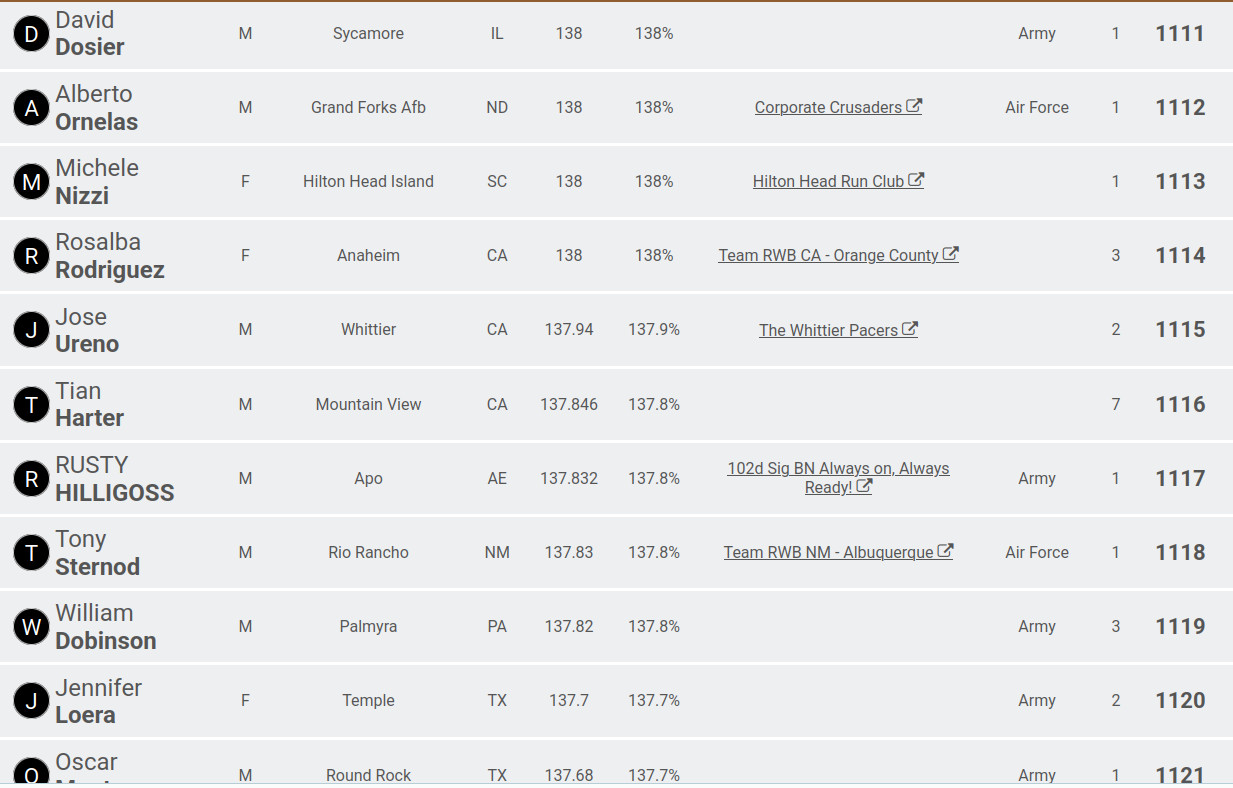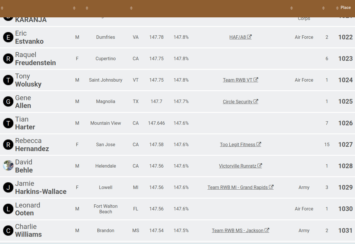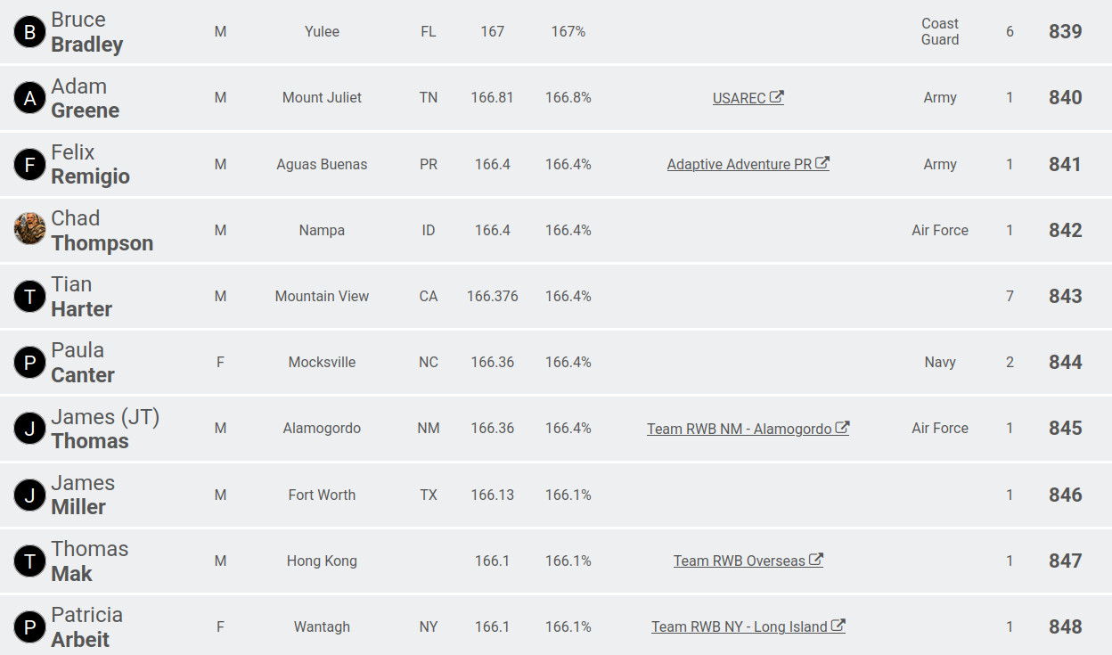 Usually the names around me on the leaderboard mean nothing to me, but Jason Leahrbaum is a friend from Virginia's running clubs. He's having a "Good Taji" this year, and has since gone on to much higher because of some long runs.