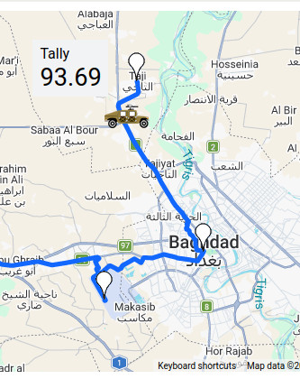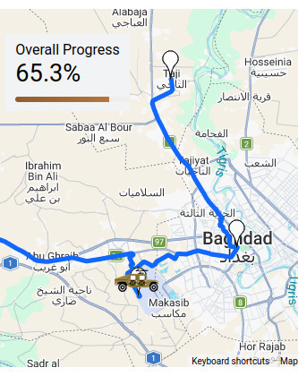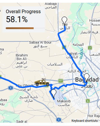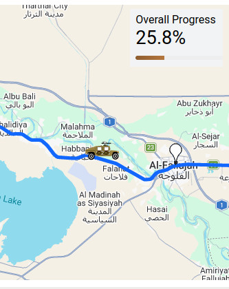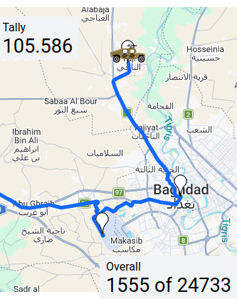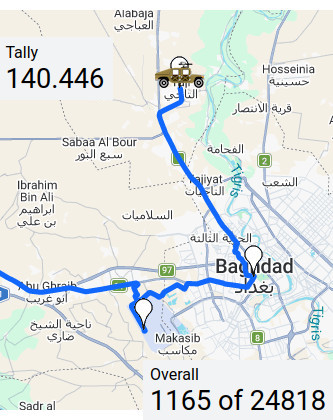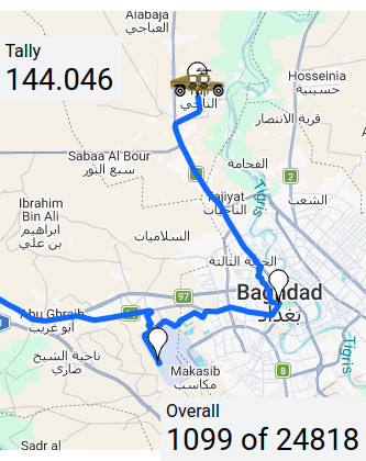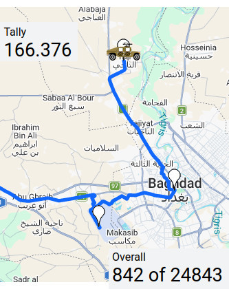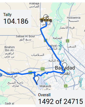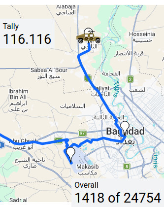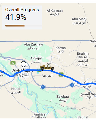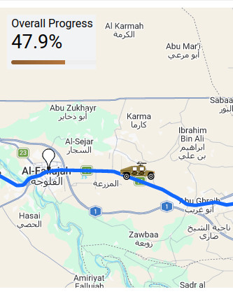 Feb. 10th at 49%: Reaching half way to the goal distance before the middle of the month is good progress. Cracks me up that Karma is over there on my left. Don't remember learning that Karma is a place in Iraq before.