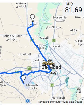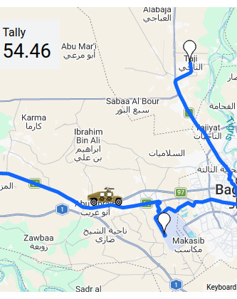 Rolling along with green on my left and blue on my right. Already the Green Zone and that road where Marla died are behind me.
