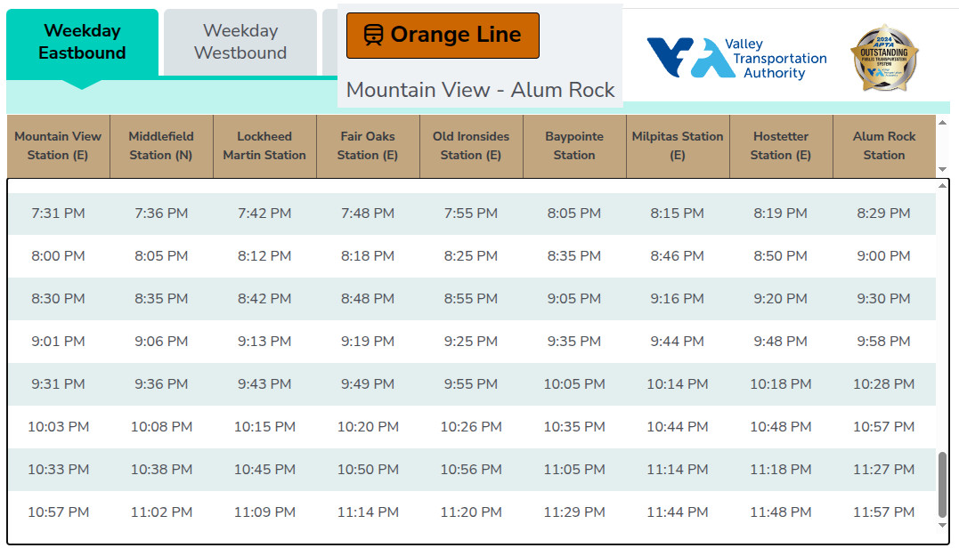 Go north along the tracks, past the train station building to Castro Street. Turn right and cross Central Expressway, where the road becomes Moffett Blvd. Walk to the second