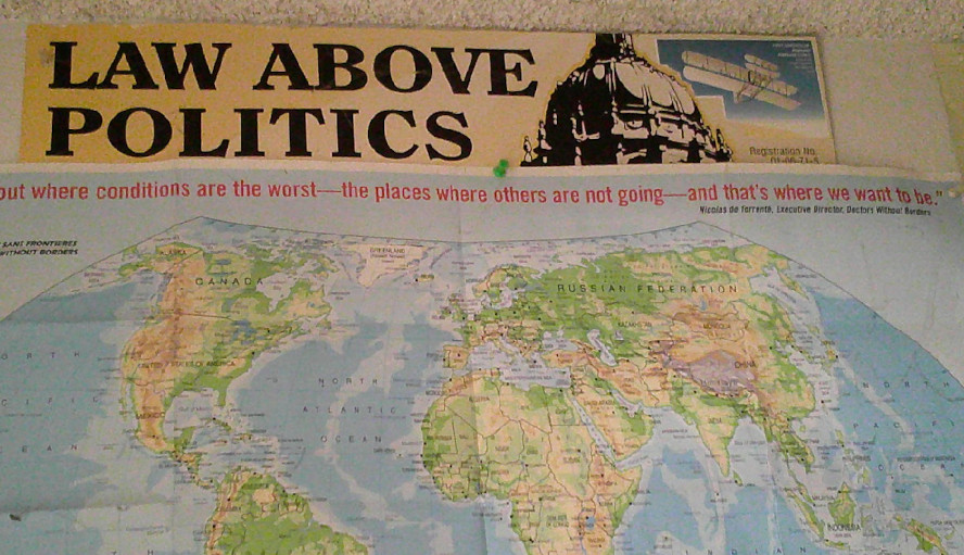 That sign was from a San Francisco Supervisor campaign my friends in the San Francisco Green Party roped me into helping with. When putting it on the wall it was important to me that the "POLITICS" was above California.