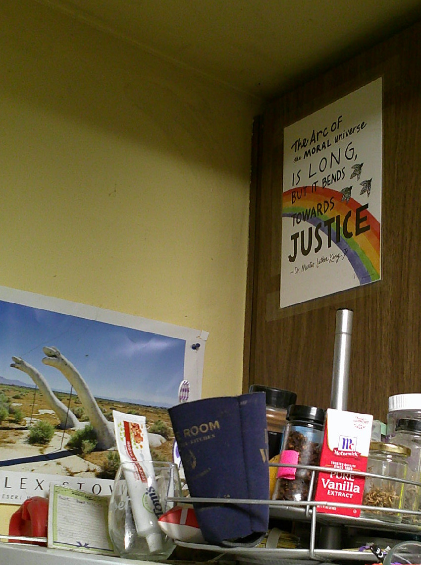 That's the upper left corner of my kitchen. That MLK Quote is one my Dad used often. The print was given to me by Cameron and Susan for Christmas or something like that.