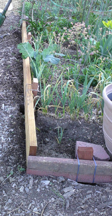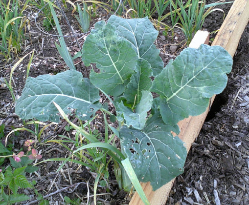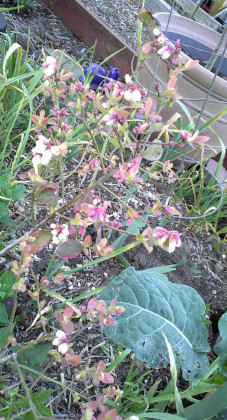 The new border is nice and I'm excited about the volunteer collard, but what's really nice in my plot right now is all the flowers. So many on the blueberry bush!