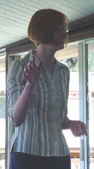 Alison Hicks talked about Mountain View Voices for Peace, where Stephanie has been one of the most active members, most recently participating in our tax day action at the Mountain View Post Office, where we handed out many fliers informing people that almost 30% of their tax dollars are being spent by the Pentagon, and and another 19% are just interest on the federal debt. She finished her talk by passing out fliers urging people to ask our Congresspeople to bring home our troops from Iraq.