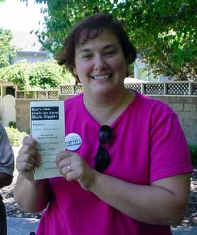 Gloria gave everybody that wanted them batches of her fliers to pass out. She must have underestimated the demand, because I could have used more myself. Click her picture to find out more about her campaign.