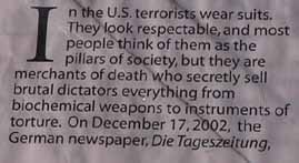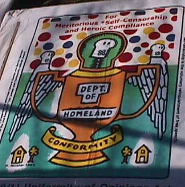 The guy that did the following pieces strikes me as a driven artist. I asked him if I could put his stuff on my site and he said no problem. What he really wanted though, was to be in a major metro daily. The guy that was hanging with him I first met when he was campaigning for an elected public defender. That campaign didn't seem to go anywhere, but this art seems to me to get people where they really are. I hope you are as hit by this stuff as I was.