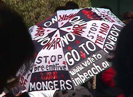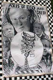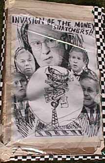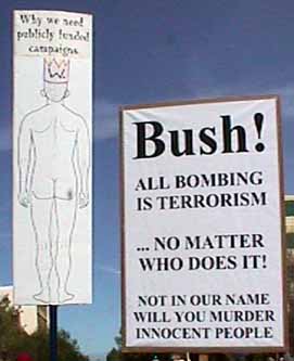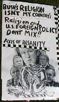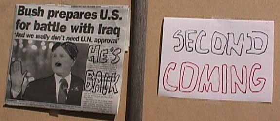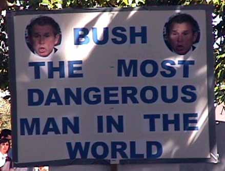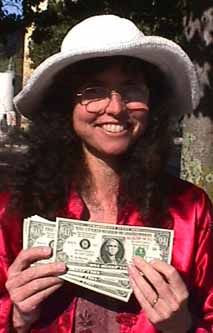 The woman on the right it the Palo Alto housewife I think is most likely to make our current President the laughing stock of the planet. Her secret weapons are the Bush Bucks, each one of which is redemable for one deception. The last I heard she was on her fourth printing of the things, another million greenbacks that tell it like it is. If you haven't seen one, email me your snail address and I'll drop one in the mail to you.