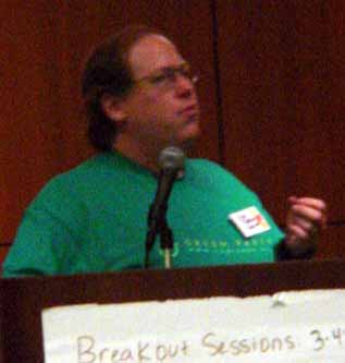 The guy in the hat had a lot to do with the GMO Free campaign in Mendocino County. He got a good hand from the crowd. He urged anybody that wants to pass something like that in their County to talk to his group, because they have a lot of wisdom to share.