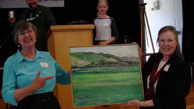 The biggest raffle prize was this very nice oil painting by Pat Gray herself. Jo Chamberlain won that.