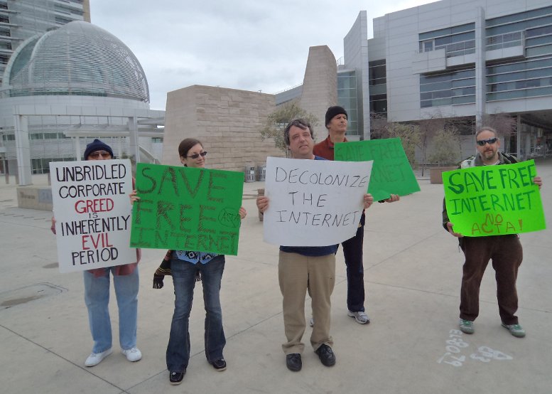 Click the flier to find out what the protest was all about. That's what they were giving everybody that wanted more information.