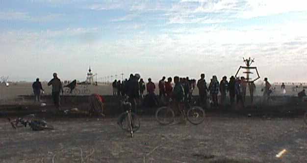 This picture was probably taken an hour after sunrise the next day. A couple of hundred yards away some guy was spinning '70s funk, stuff like Sly Stone singing "thank you for letting me be myself." Even so, the air was contemplative. The ashes had their own story about mortality to share.