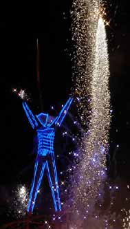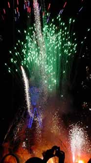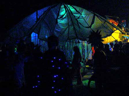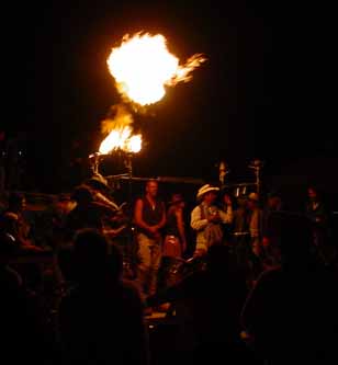 Everyone was in a party mood. Here and there was something else to focus your attention on, and whatever it was would have a clump of people watching. There were lots of mobile discos blaring dance music, and lots of stuff that was just there to look at. The flames are coming from this thing that puffed flame every time the guy at the center of it hit his drum.