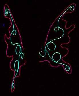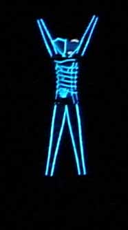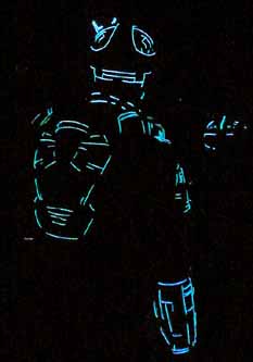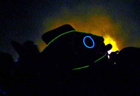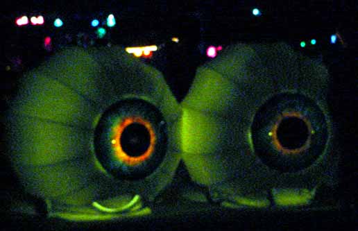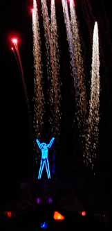 The moon provided enough light to see, but not enough to take pictures. Therefore, all I could get was stuff that had a light source as part of the art. The man was easy to photograph, even from far off. Other things like the red woman I could only get when they were close.