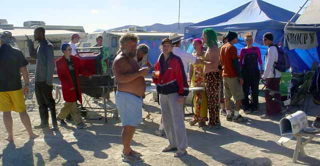 Usually around sunup I'm still asleep. However, at Burning Man on Friday morning, that's when the Group W sunrise cocktail party and carcass inhaling event happens. How could anybody miss that? I showed up.